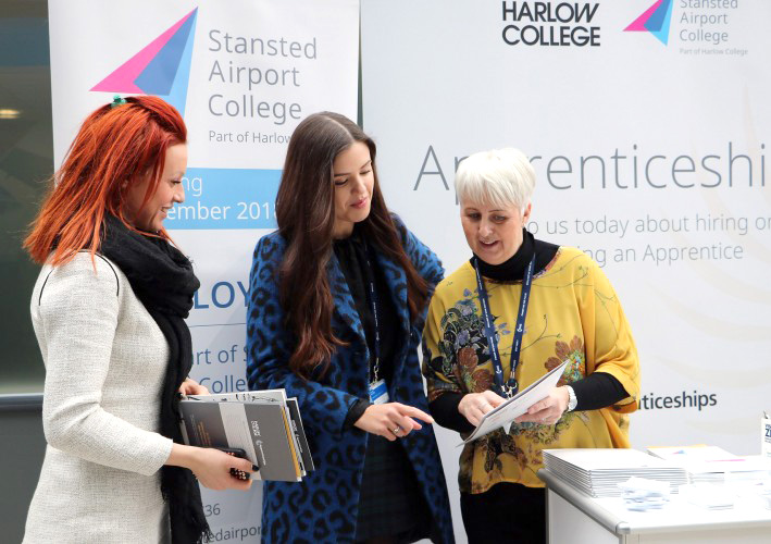 Our staff were at Stansted Airport’s Enterprise House, where an open drop-in session was held to provide details about available Apprenticeship opportunities at the new Stansted Airport College, opened September 2018, and to share with on-site business partners the opportunities and value that apprentices can bring.