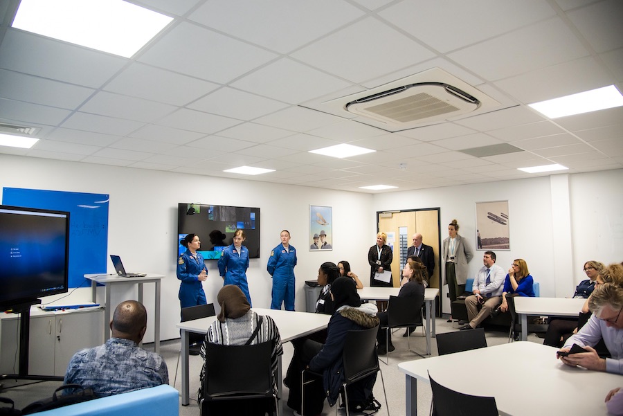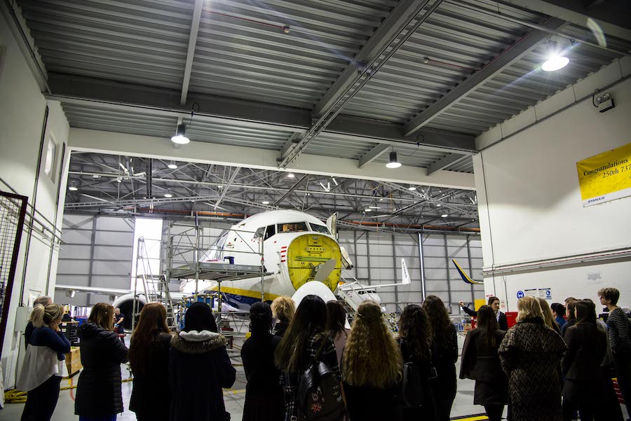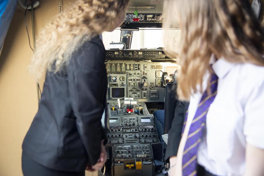 Budding Year 11 female engineers headed to the College from Schools as far afield as Chobham Academy in Stratford, East London and Colchester High School, to meet members of the Red Arrows ‘Blues Team’, take part in Engineering activities in the workshop, and have an “access all areas” tour of the Ryanair building at Stansted Airport.