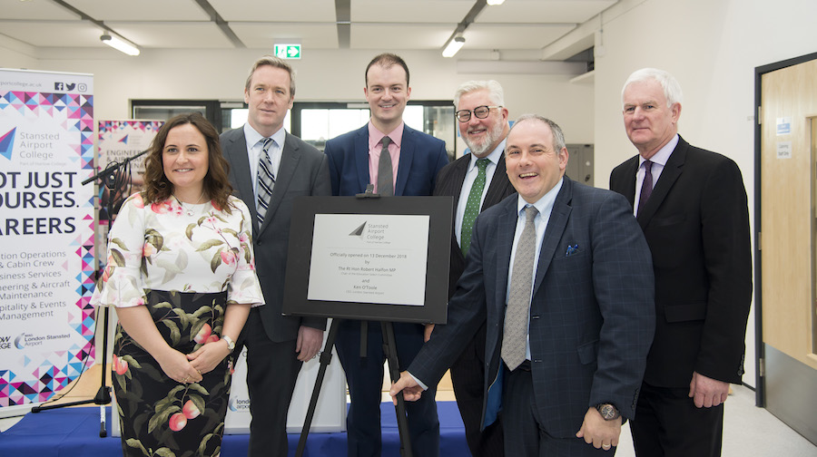 L-R: Karen Spencer (Principal of Harlow College and Stansted Airport College), Ken O’Toole (CEO, London Stansted Airport), Adam Bryan (Managing Director of South East Local Enterprise Partnership), Cllr Kevin Bentley (Deputy Leader of Essex County Council), The Rt Hon Robert Halfon MP (Chair of the Education Select Committee), Howard Rolfe (Leader, Uttlesford District Council)
